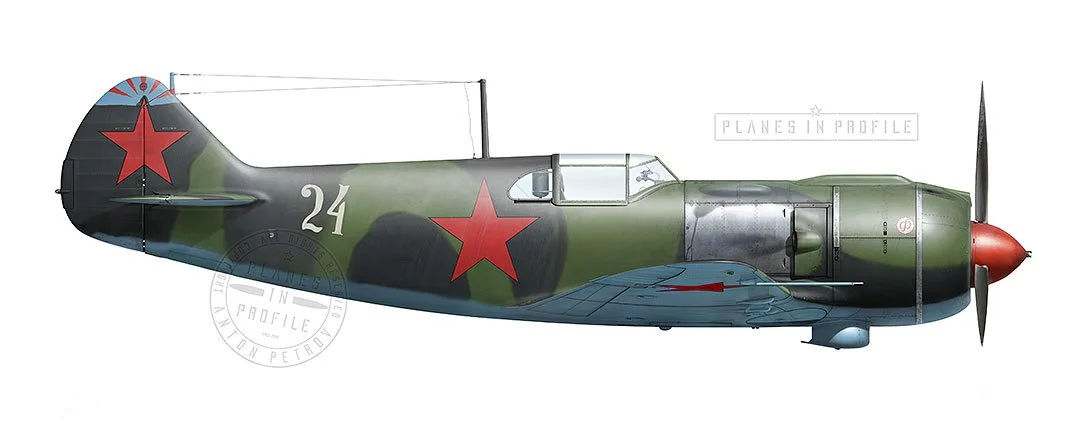 “White-24” is an airplane which I’ve seen illustrated in at least one publication about the La-5[1]. No doubt that this plane was chosen for its intriguing pilotka. “Pilotka” was a nickname used by the Soviets to refer to the painted top part of the Rudder/Fin - a tactical identification marking which often represented the airplane’s squadron. The actual word “Pilotka” is simply Russian for “Flight cap” or “Side cap”.