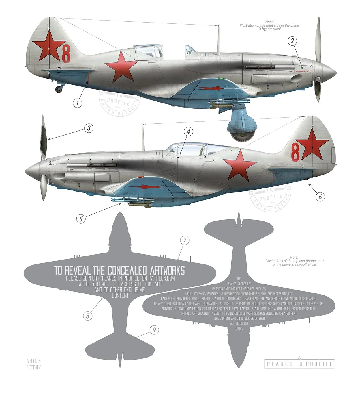 5. The plane might have been equipped with RO-82 rocket launch racks, with RS-82 rockets loaded onto them. This presumption is based on a photo of a MiG-3 from 27th IAP which may or may not be Red-8 (Same as in point#2). We also know that Matakov’s missions often involved ground attacks, which helps to confirm that his plane might have been equipped with rockets.