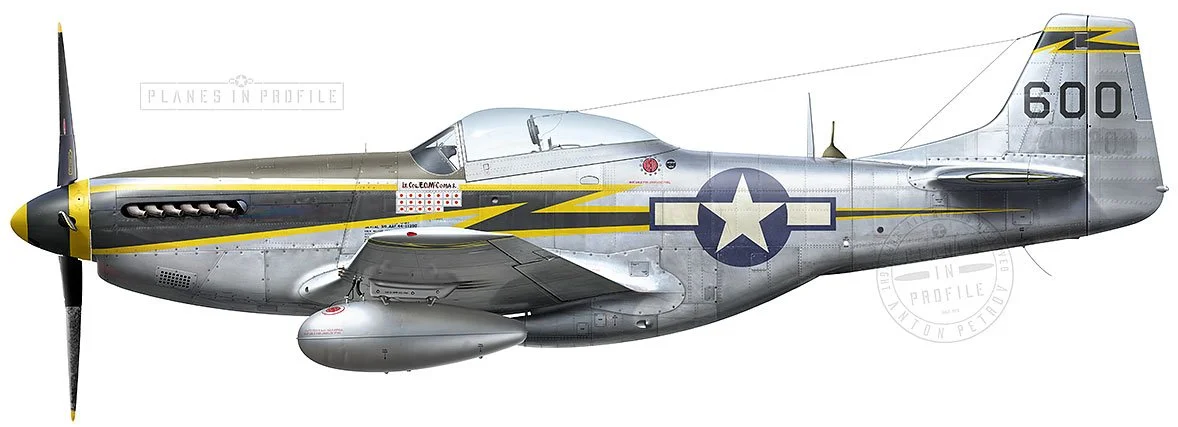 McComas’s P-51D “600” as it looked in late December 1944. The illustration is based on THIS photograph.